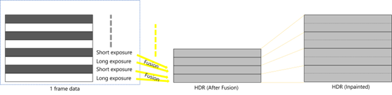 HDR technique for image sensors typically uses the fusion of multiple images(frames) with different exposure times to create a single HDR image(frame).